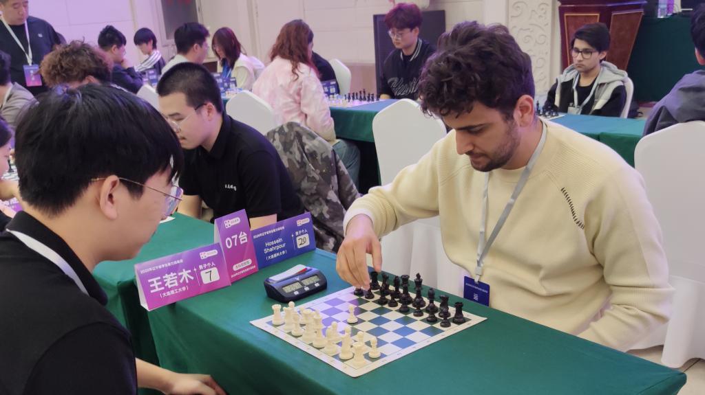 留学生沉着应对,他们或沉思默想,或果断出击,每一次落子都经过深思熟虑,展现出扎实的棋艺功底。本次智力运动会不仅是棋艺的较量、脑力的拼搏,更是文化交流的平台。在国际象棋的黑白方格世界里,智慧与激情交织,不同文化背景的棋手们以棋会友,在辽宁这片土地上找到了共同的交流平台。