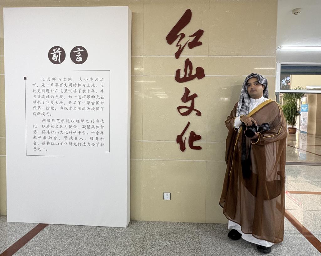 伊拉克籍留学生穆之言(ALKAWMANI MOHAMMED TALIB FARHOOD)作为留学生代表,受邀参与这场文化盛宴,以独特视角感受红山文化的魅力,开启了一段探寻中华文明起源的奇妙之旅。